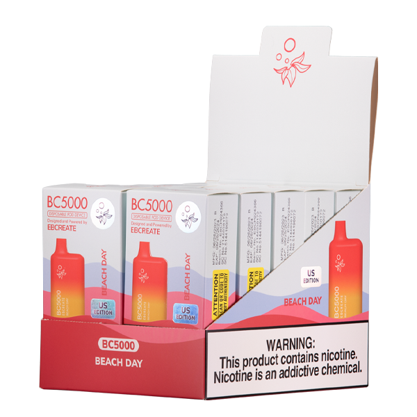 - Flavor: The Beach Day BC5000 flavor mixes an exotic blackcurrant taste with a flavorful orange taste. This one-of-a-kind vape flavor is only available in EBCreate disposables.