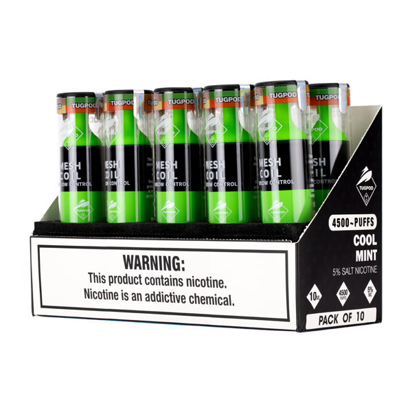 - Flavor: Enjoy a refreshing, icy mint taste with the Cool Mint Tugpod Evo 4500 puff vape.