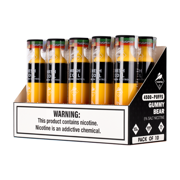 - Flavor: The Gummy Bear Tugpod Evo 4500 vape uses a mix of sweet and tangy fruit flavors in a long-lasting vape device.