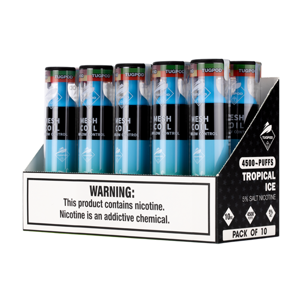 - Flavor: The Tropical Ice Tugpod Evo 4500 vape mixes pineapple, mango and kiwi flavors with a wintry mint for a top-notch tropical fruit and ice mix.